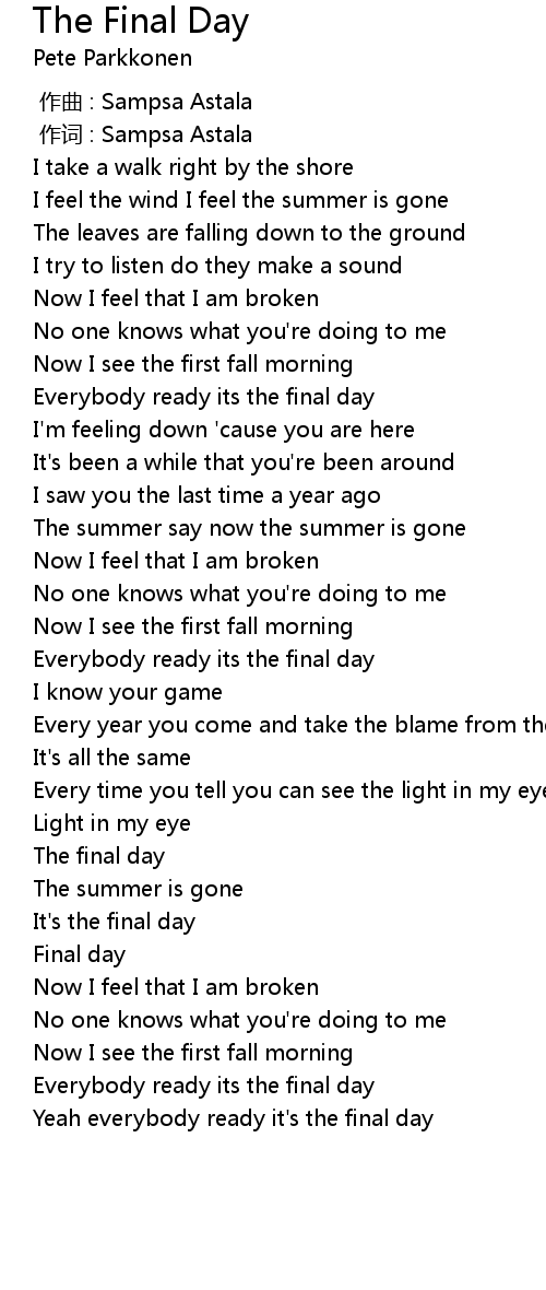| [02:47.43] | The final day |