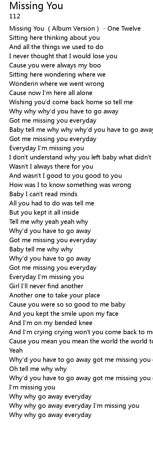 | [00:00.100] | Missing You Album Version One Twelve |