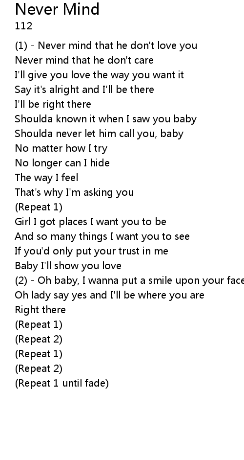 | (1) - Never mind that he don't love you | |