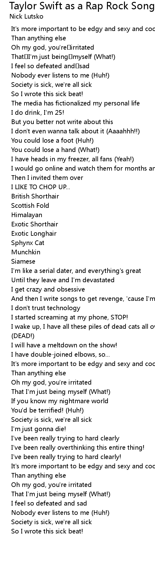| [01:03.257] | And then I write songs to get revenge, 'cause I'm psychotic |