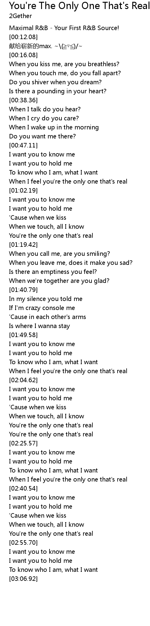 | [00:58.46] | When I feel you' re the only one that' s real |