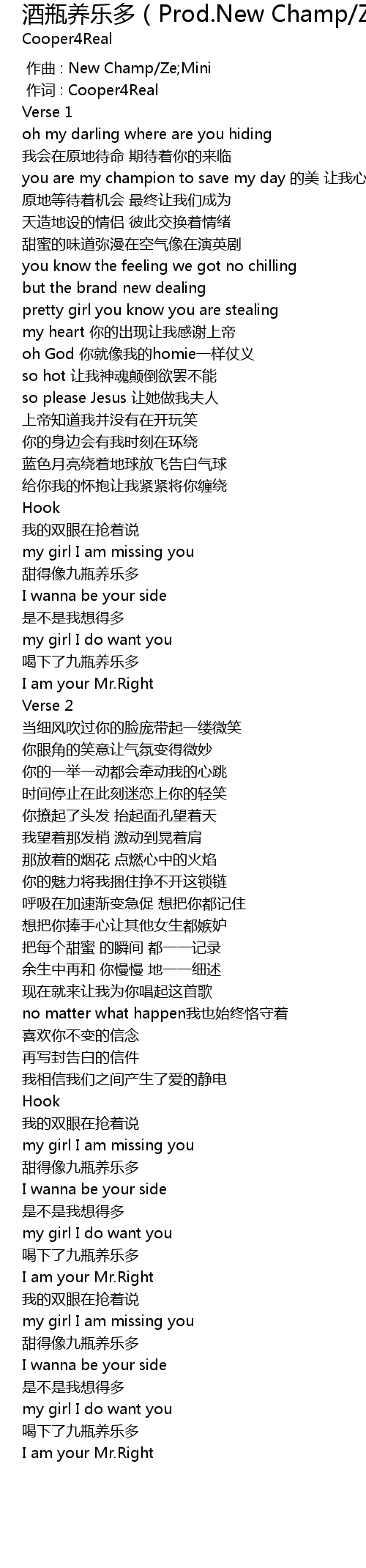 | [00:01.000] | 作词 : Cooper4Real |