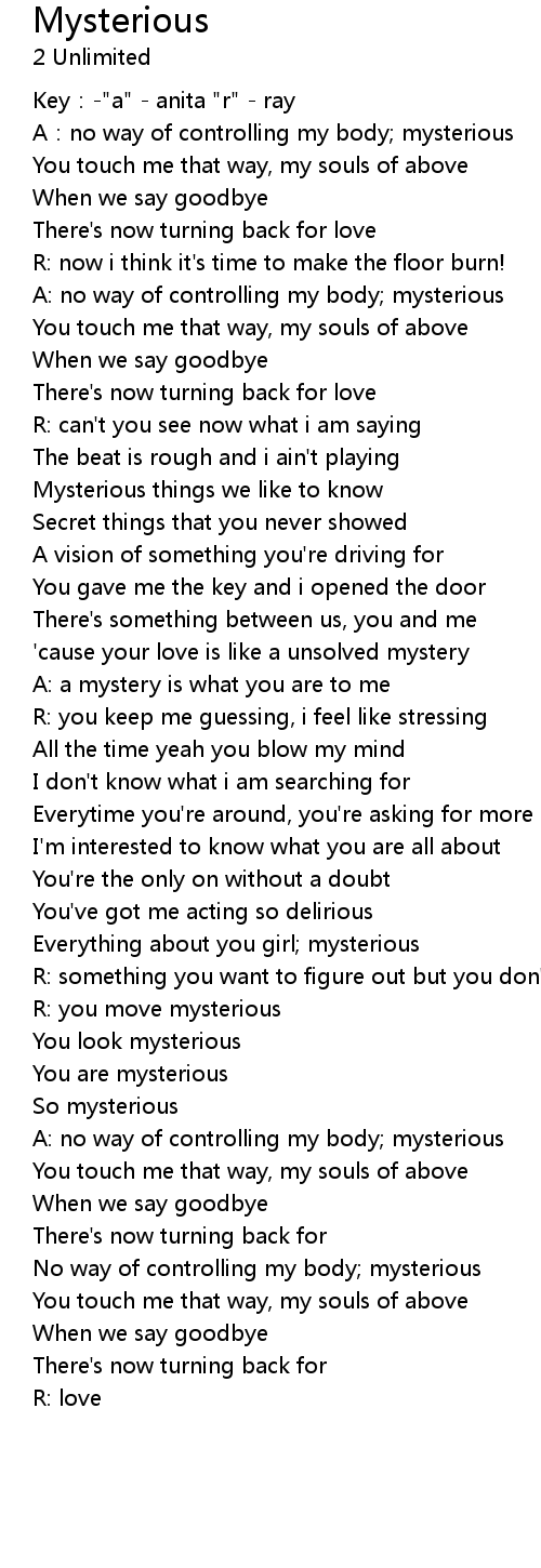| A: a mystery is what you are to me | |
