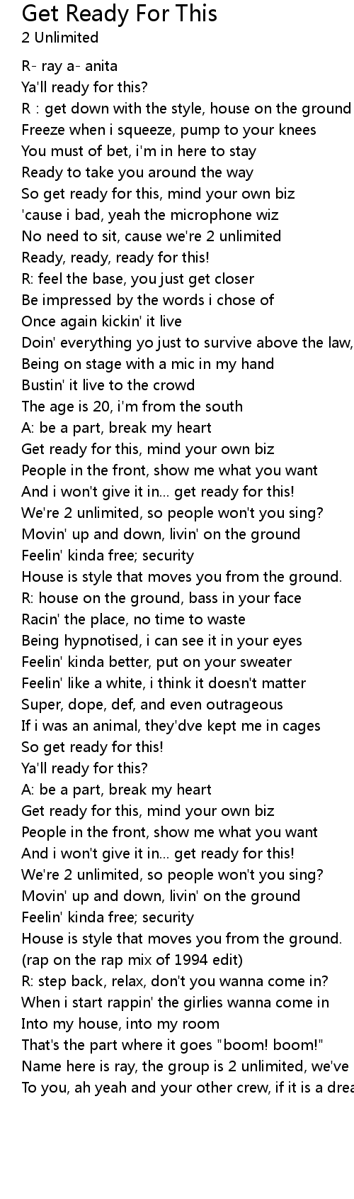 | Name here is ray, the group is 2 unlimited, we' ve got a lot to say... | |