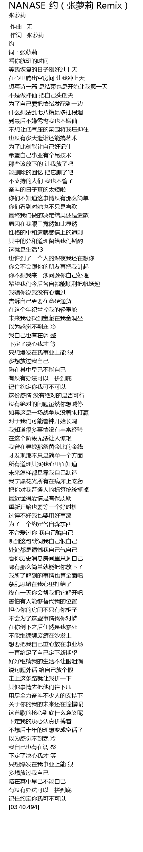 | [00:12.180] | 词:张萝莉 |
