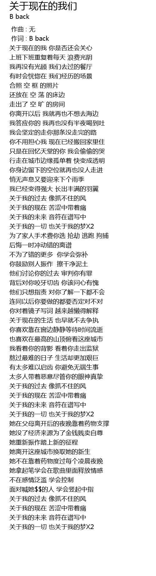 | [02:10.495] | 关于我的现在 苦涩中带着痛 |