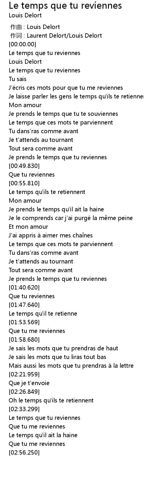 | [00:46.240] | Je prends le temps que tu reviennes |