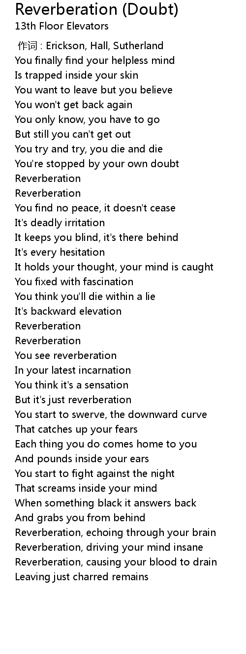 | [02:30.18] | Reverberation, causing your blood to drain |