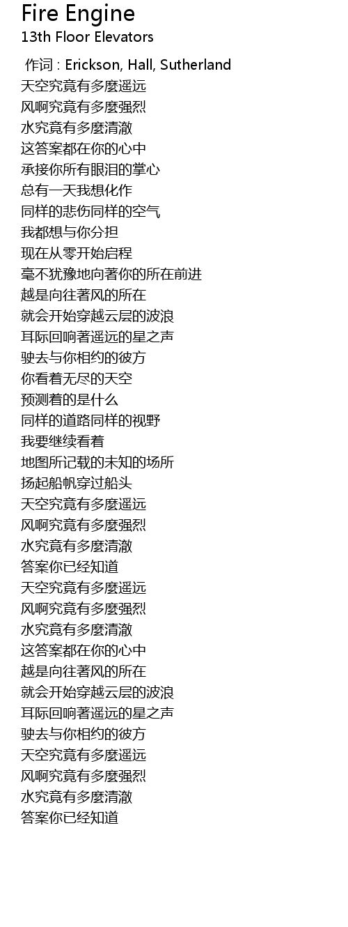 | [00:00.00] | 作词 : Erickson, Hall, Sutherland |