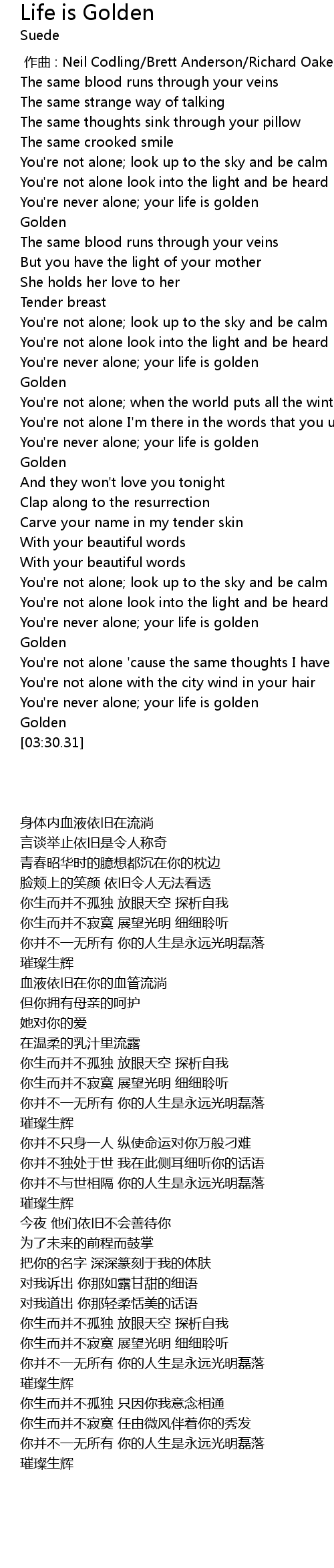| [03:18.64] | You're never alone; your life is golden |