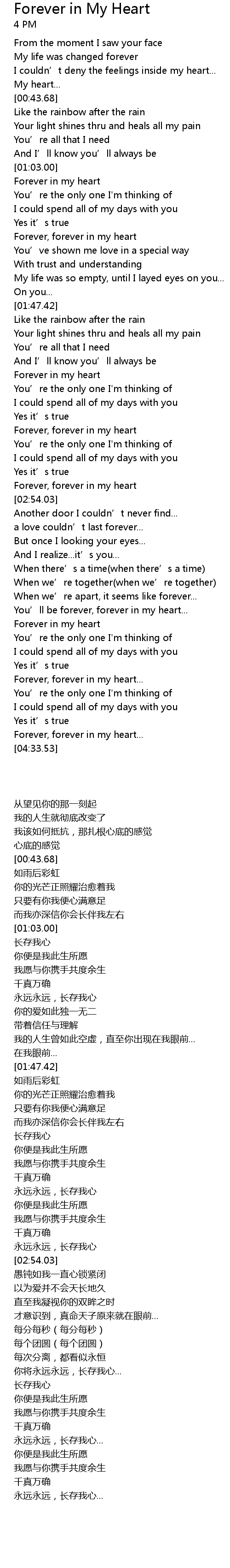 | [03:47.86] | Forever in my heart |