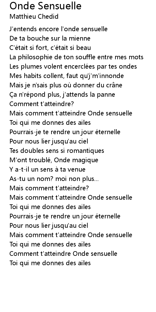 | Mais comment t' atteindre Onde sensuelle | |