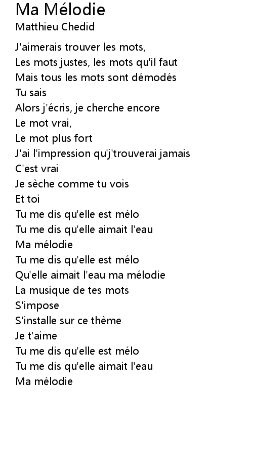 | Qu' elle aimait l' eau ma mé lodie | |
