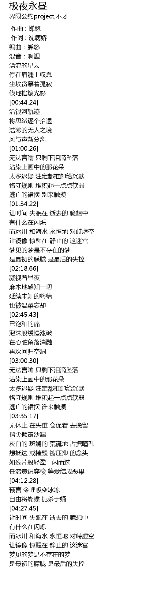 | [01:43.97] | 而冰川 和海水 永恒地 对峙虚空 |