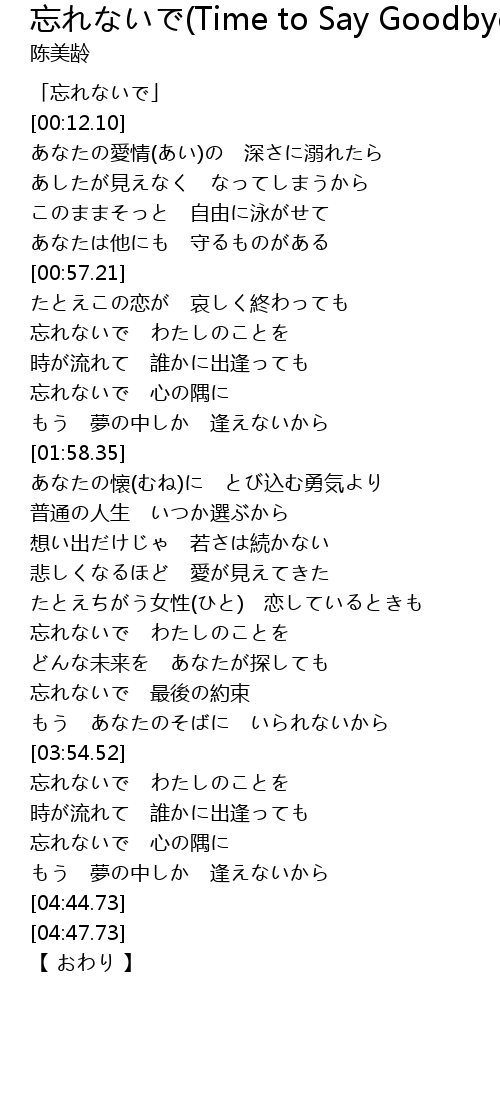 | [04:31.53] | もう 夢の中しか 逢えないから |