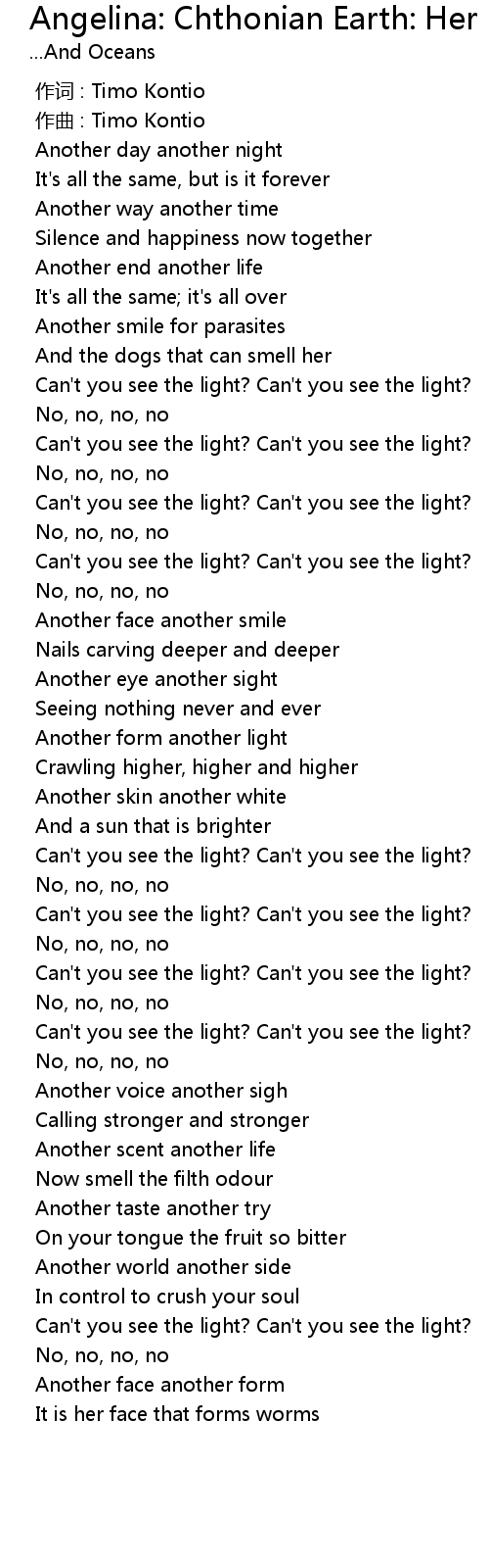 | [01:51.677] | Can't you see the light? Can't you see the light? |