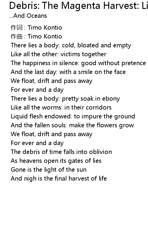 | [00:21.800] | There lies a body: cold, bloated and empty |
