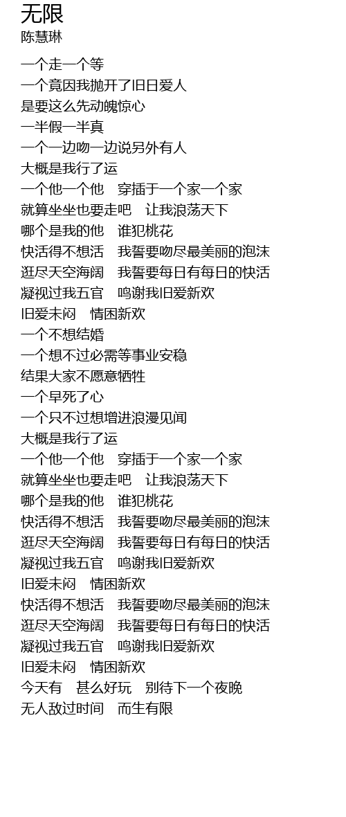 | Song | 无限 |