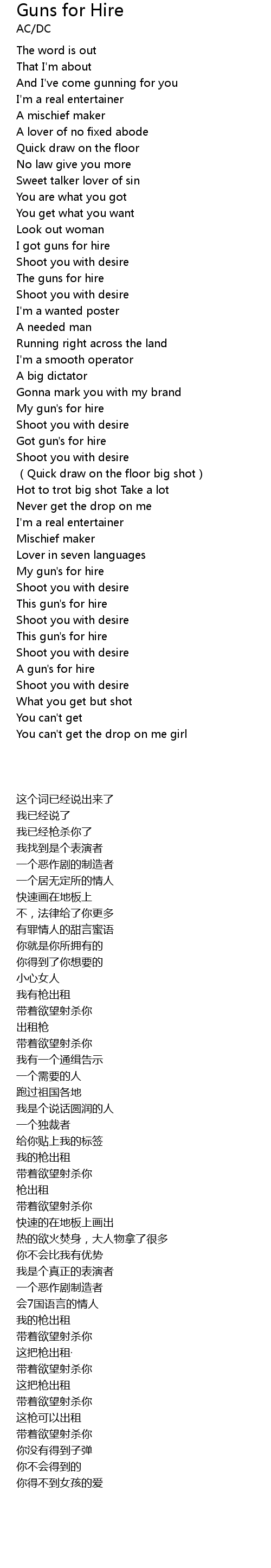 | [02:36.89] | My gun' s for hire |