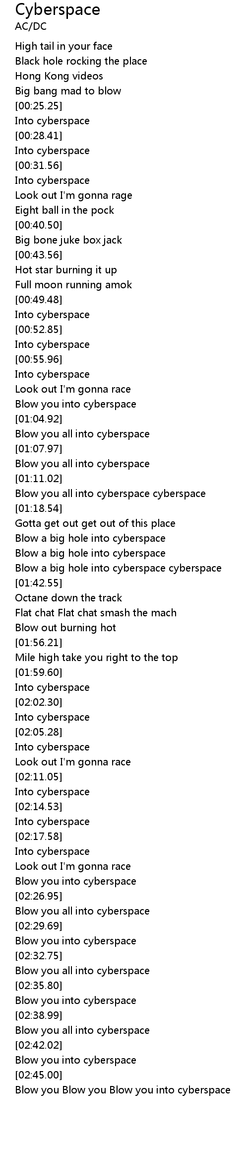 Blow you all into cyberspace cyberspace |
