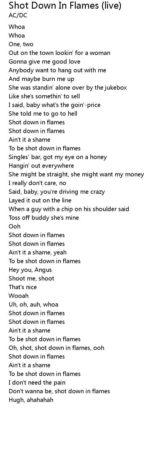 Shot Down In Flames (live) Lyrics