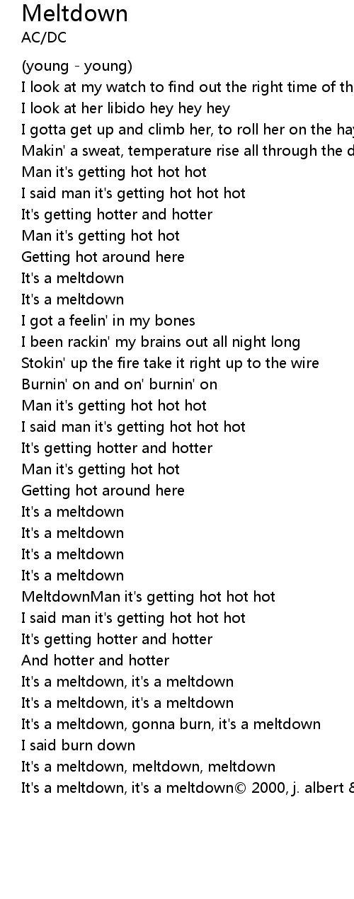 | It' s a meltdown, gonna burn, it' s a meltdown | |