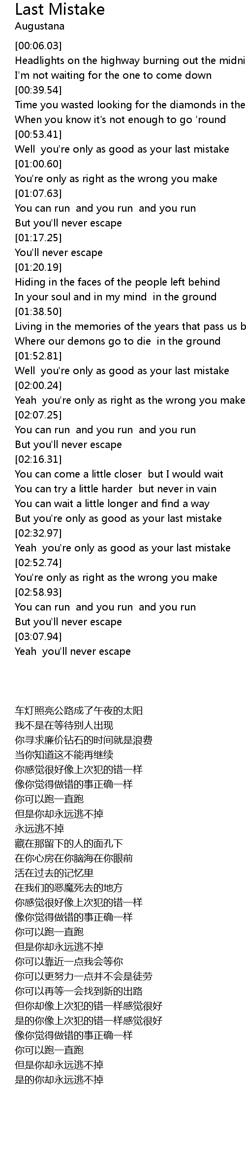 | [02:46.61] | Yeah you're only as good as your last mistake |