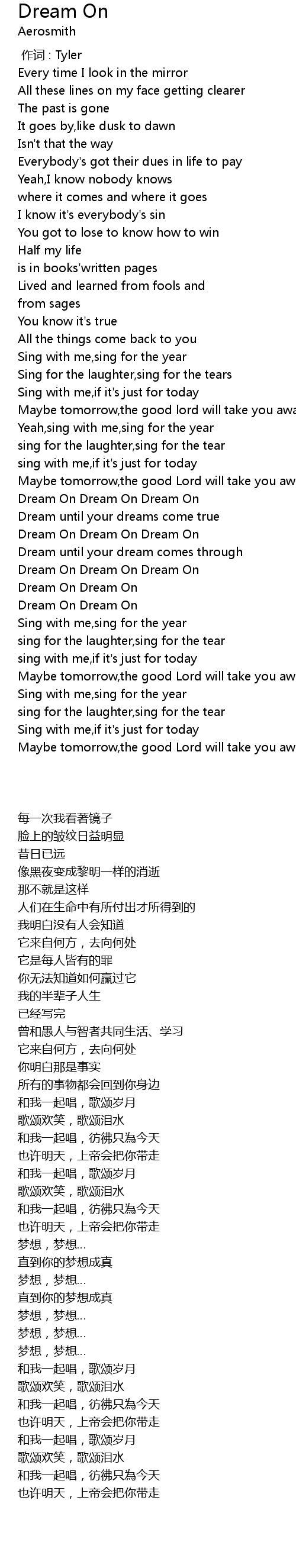 | [03:28.567] | Dream On Dream On |
