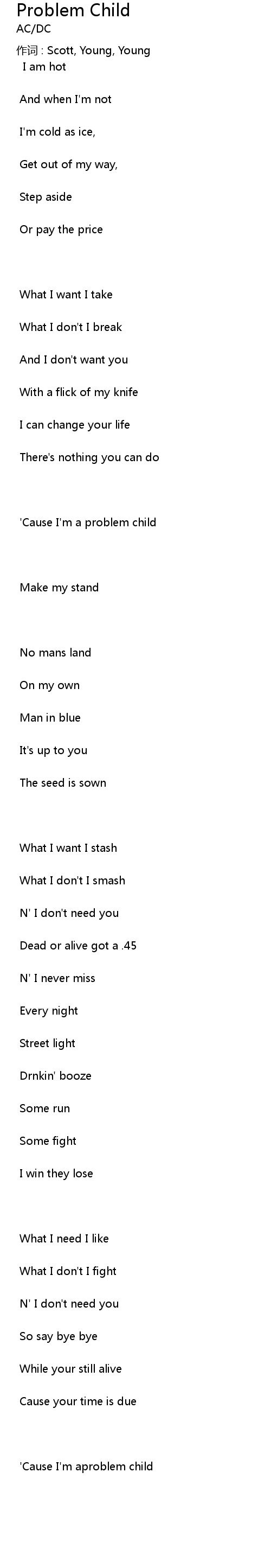 | ' Cause I' m a problem child | |