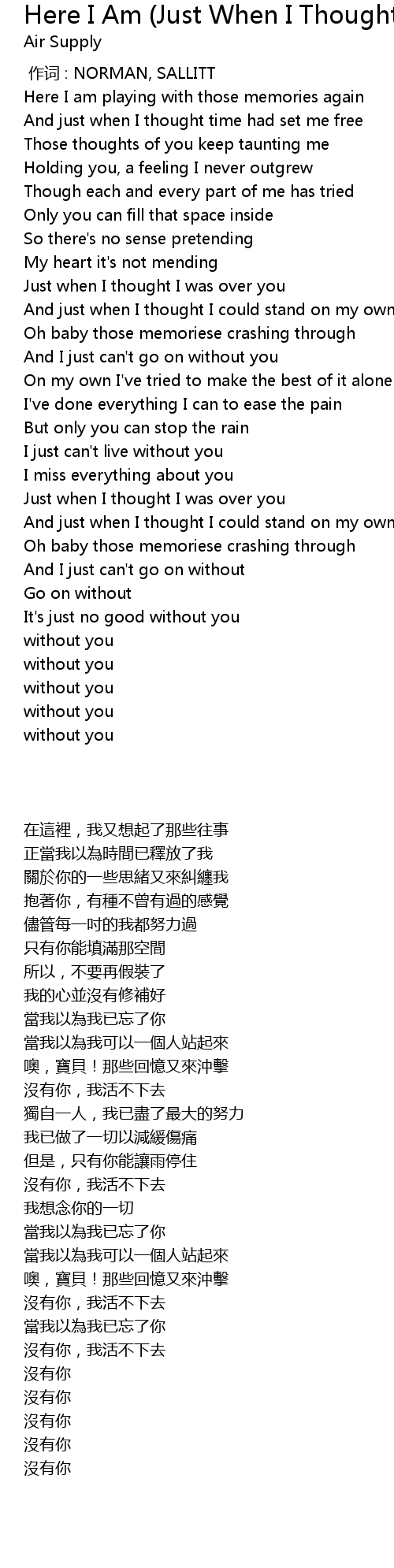 | [02:12.460] | I just can' t live without you |