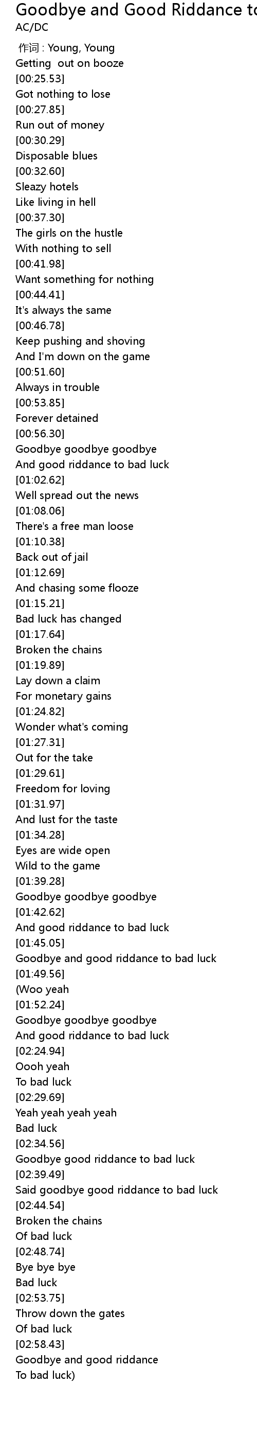 | [02:36.37] | Goodbye good riddance to bad luck |