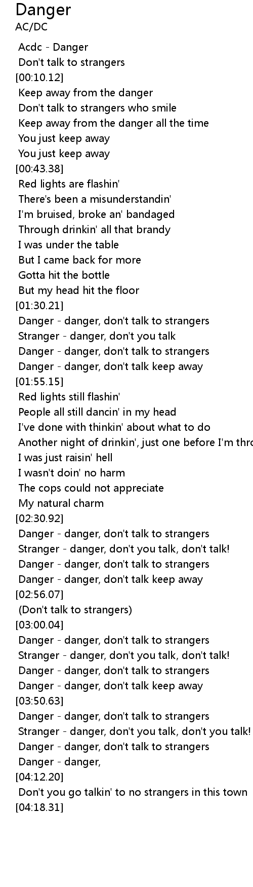 [01:31.62] Danger - danger, don't talk to strangers