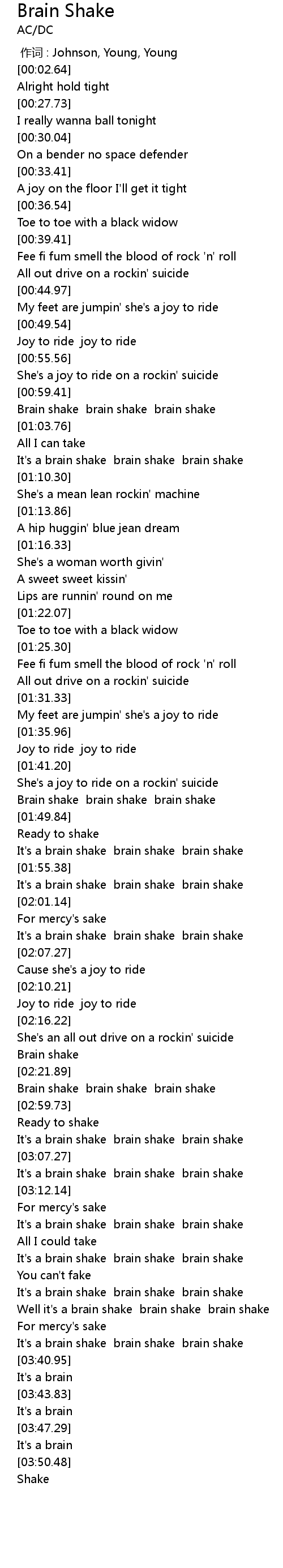 | [03:01.95] | It' s a brain shake brain shake brain shake |