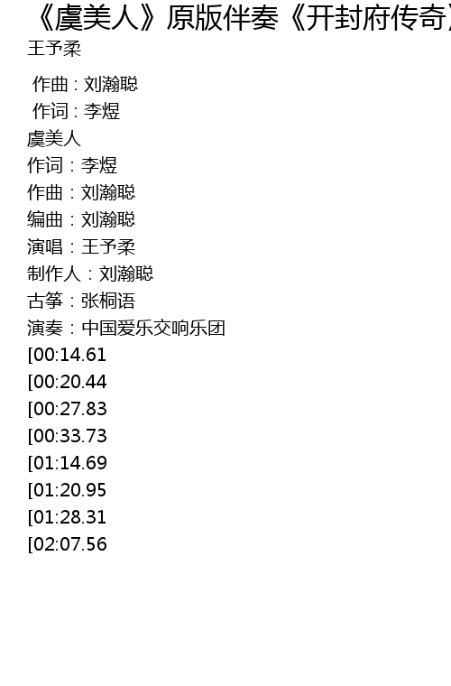 | Song | 《虞美人》原版伴奏《开封府传奇》插曲 |