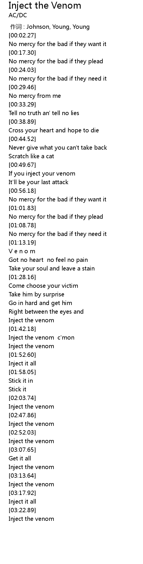 | [02:49.81] | Inject the venom |