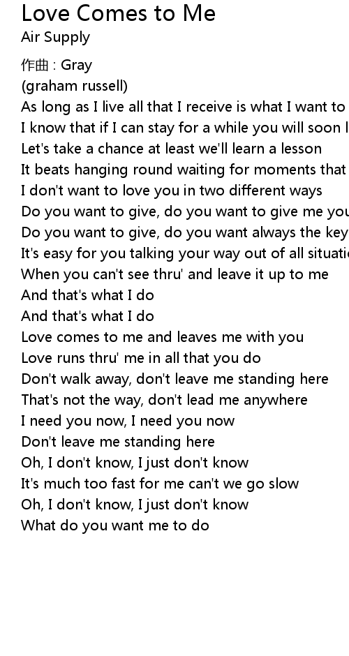 | Love comes to me and leaves me with you | |