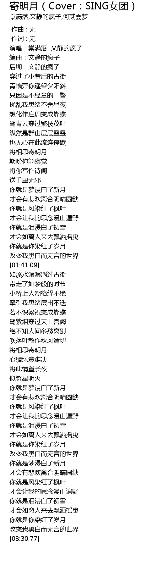 | [02:21.73] | jiàng xiàng sī jì míng yuè |