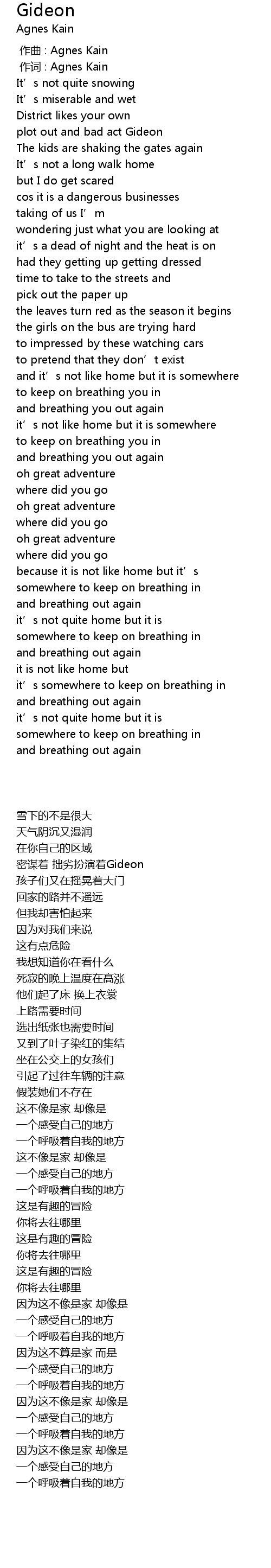 | [00:00.00] | zuò qǔ : Agnes Kain |