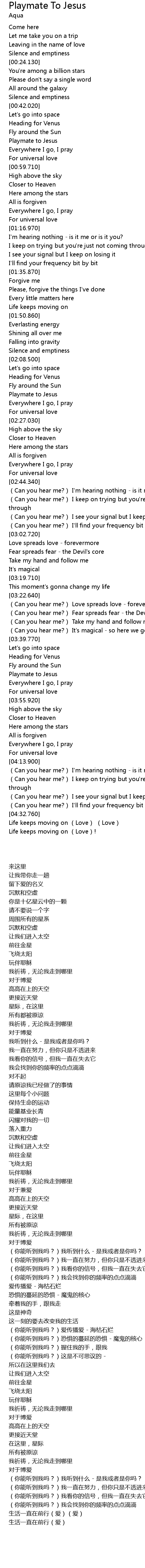 | [00:50.040] | Playmate to Jesus |