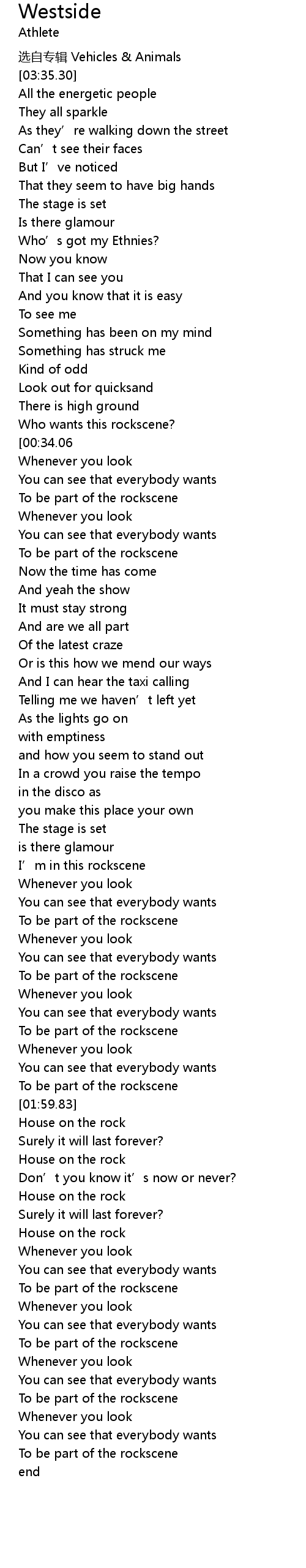 | [01:35.00] | To be part of the rockscene |