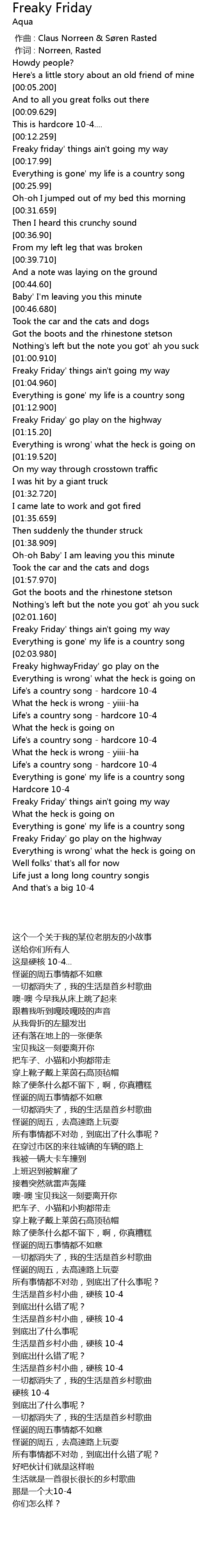 | [02:13.799] | Freaky highwayFriday' go play on the |