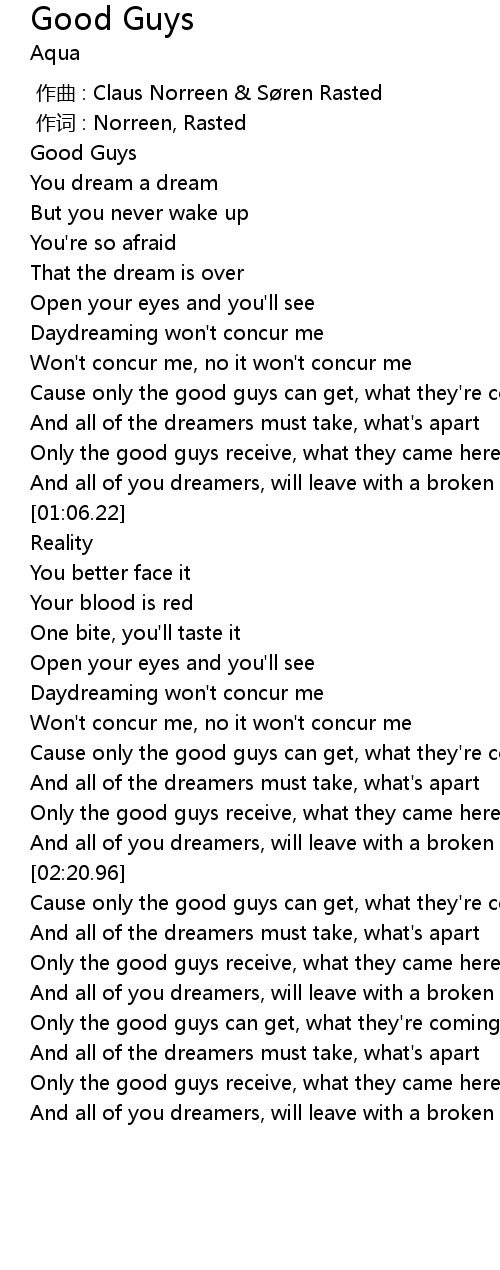 | [00:44.30] | Cause only the good guys can get, what they're coming for |