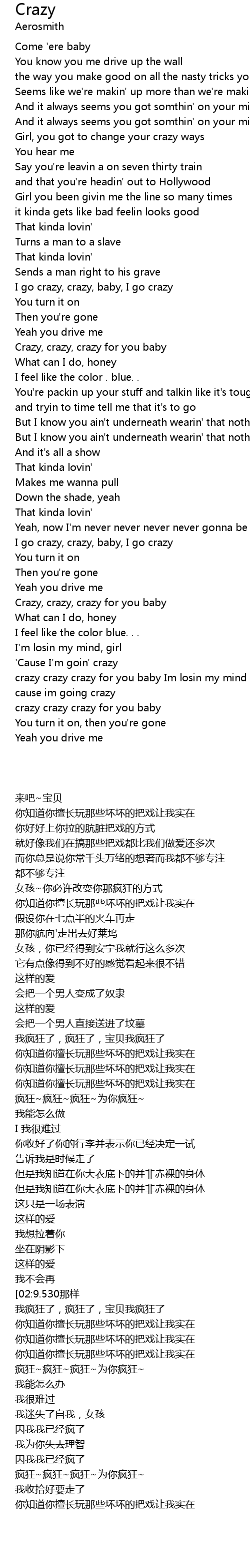 crazy crazy crazy for you baby |