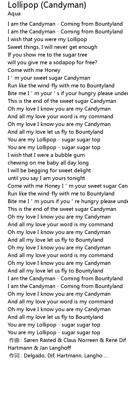 | [01:46] | Come with me Honey I'm your sweet sugar Candyman |