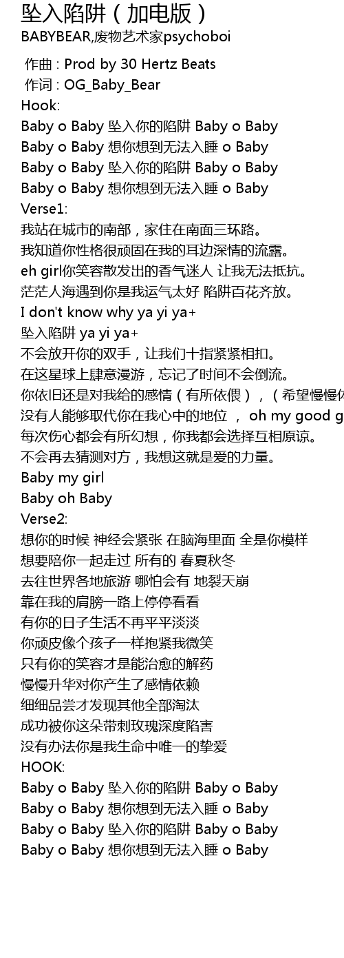 | [03:01.92] | Baby o Baby 坠入你的陷阱 Baby o Baby |