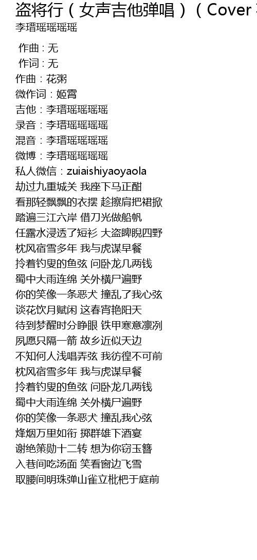 | Song | 盗将行(女声吉他弹唱)(Cover 花粥) |