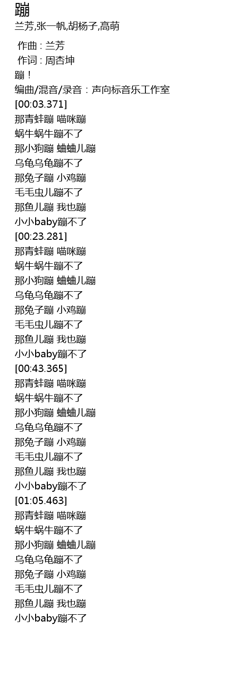 | [01:05.965] | 那青蛙蹦 喵咪蹦 |