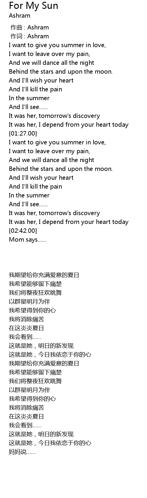 | [00:01.00] | 作词 : Ashram |