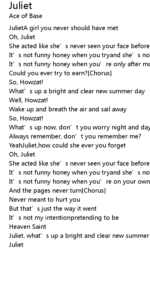 | Juliet, what’s up a bright and clear new summer day[Chorus] | |