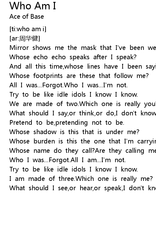 | [00:20.442] | Mirror shows me the mask that I've been wearing. |